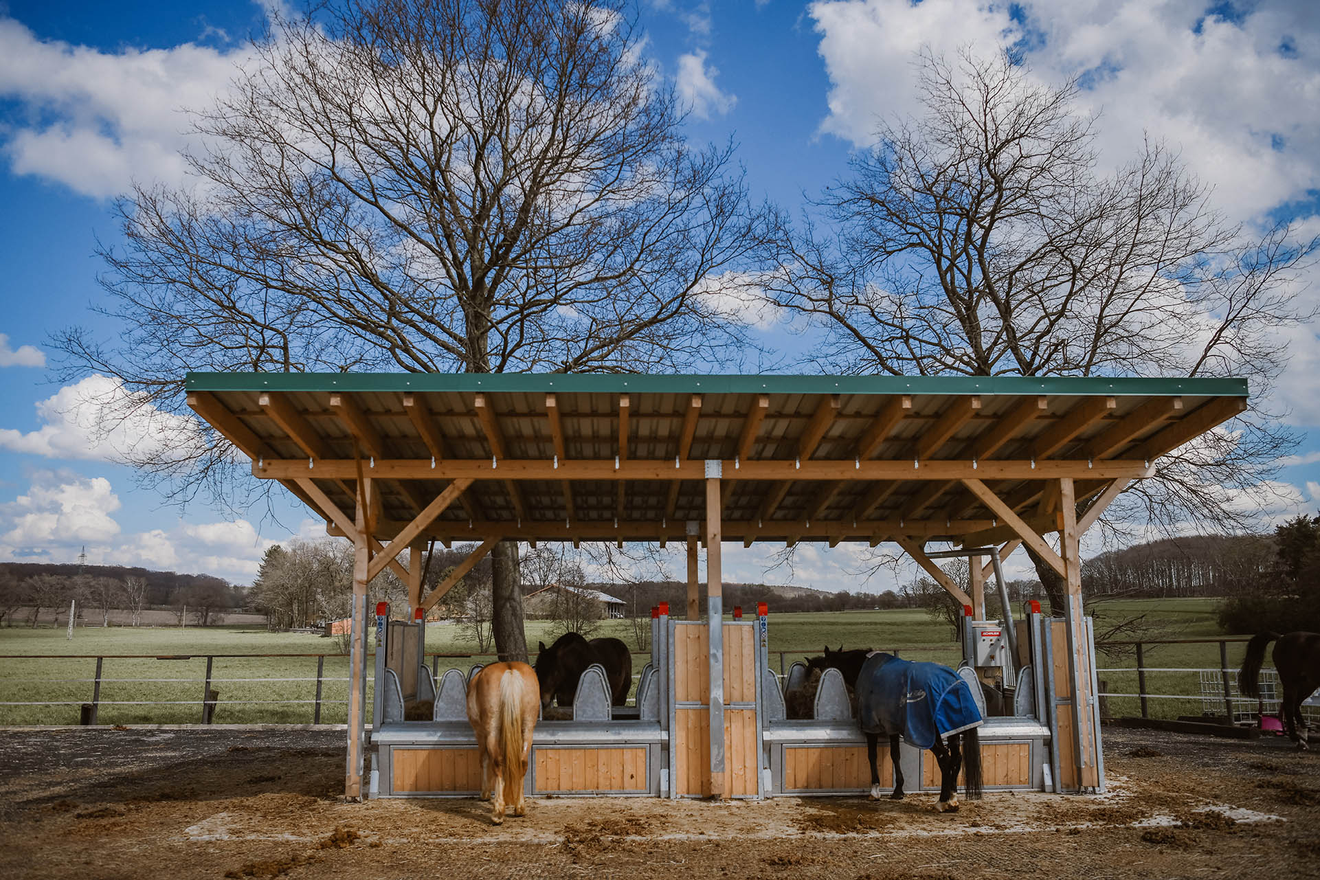 Der angrenzende Führplatz ergänzt den Paddockstall optimal, da er die Möglichkeit bietet, die Pferde regelmäßig und kontrolliert zu bewegen. Dies ist besonders wichtig für die Erhaltung der Kondition und Muskelfitness sowie zur Vorbeugung von Bewegungsmangel und dessen Folgen. Zudem ermöglicht der Führplatz eine strukturierte Trainingsroutine, die individuell an die Bedürfnisse der Pferde angepasst werden kann. Insgesamt stellt ein Paddockstall mit Führplatz eine hervorragende Lösung dar, um Tierwohl und Training effektiv zu verbinden.